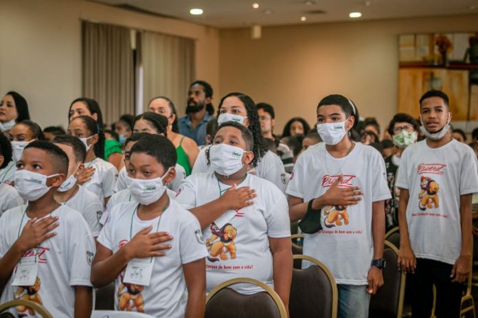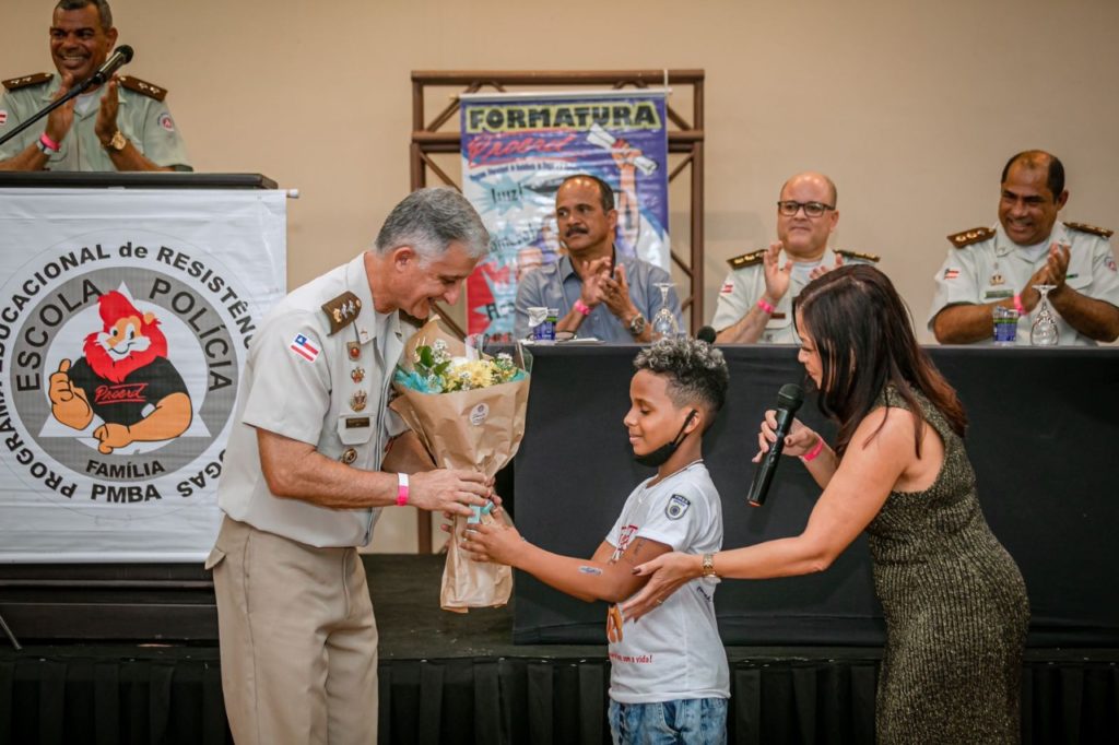 Com objetivo de atuar na prevenção do uso de drogas por crianças e adolescentes, e na perspectiva de que este público evite situações que tragam riscos à segurança, o Programa Educacional de Resistência às Drogas e à Violência (Proerd) promoveu na tarde desta sexta-feira (22/7), a solenidade de formatura da turma 2022.1. Executado pela Polícia Militar, o evento aconteceu no Hotel Vila Galé Marés, em Guarajuba, e formou 17 turmas de cinco escolas da rede pública municipal, todas localizadas na Costa de Camaçari, totalizando 525 formandos.