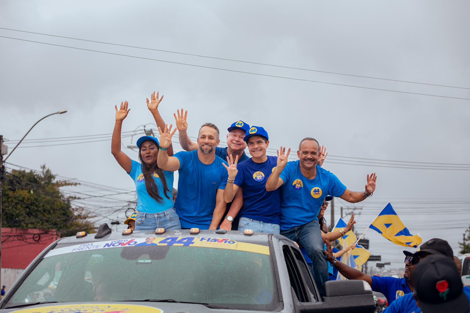 O candidato a prefeito Flávio Matos (União Brasil) comemorou o sucesso da Carreata do 44, realizada neste domingo (1), do bairro do Limoeiro à Gleba E. Um dos maiores líderes da política nacional, o ex-prefeito de Salvador e vice-presidente nacional do União Brasil, ACM Neto, fez questão de comparecer e acompanhou ao lado de Flávio o percurso.