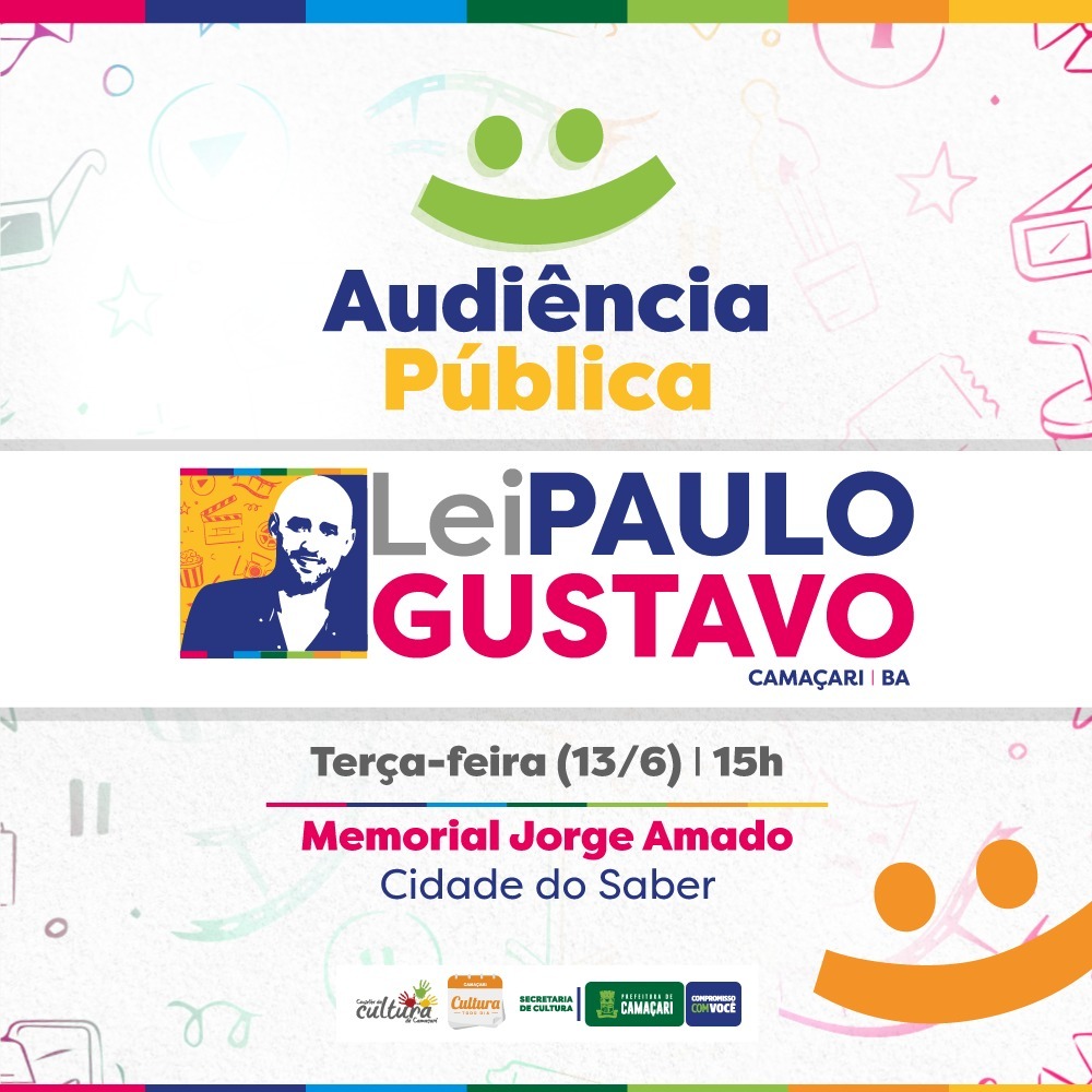 Nesta terça-feira (13/6), às 15h, a Secretaria da Cultura (Secult) promove na Cidade do Saber, uma audiência pública para debater a aplicação da Lei Paulo Gustavo (LPG) em Camaçari. O objetivo é que a execução da lei no município seja construída de forma democrática, com ampla participação da sociedade civil, especialmente dos fazedores de cultura.