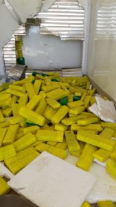 Durante varredura, a pastor alemão indicou algo estranho em um dos lados do veículo e chegou a fazer um furo na estrutura. Nesse local, os militares estaduais e os rodoviários federais encontraram 1,5 tonelada de maconha prensada, dividida em tabletes.
