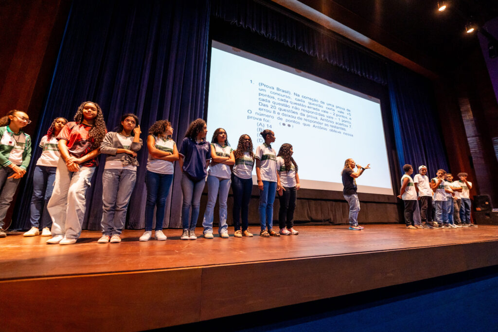A atividade reuniu estudantes de diversas escolas municipais no Teatro Cidade do Saber (TCS), tanto pela manhã quanto à tarde, consolidando iniciativas que vêm sendo desenvolvidas em sala de aula ao longo do ano letivo, além de reforçar os conteúdos previstos nas matrizes de referência dos exames.