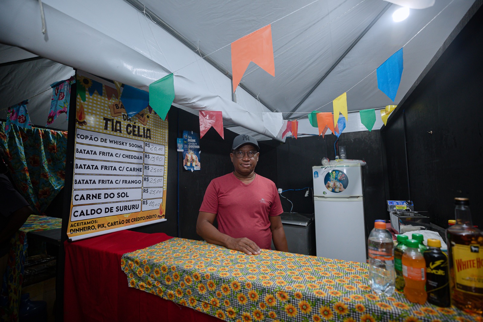 Para ambulantes e barraqueiros, a festa significa uma oportunidade para garantir um dinheiro extra. É o que destaca Antônio Batista, do bairro Lama Preta, que, pelo terceiro ano no evento, comercializa, alimentos, como caldos e tira-gostos, e bebidas, incluindo o tradicional licor. “Trabalho como garçom, mas na época do Camaforró aproveito para fazer uma grana a mais, o que ajuda no sustento. A expectativa para este ano está sendo boa, e que a cada dia melhore mais”, ansiou.