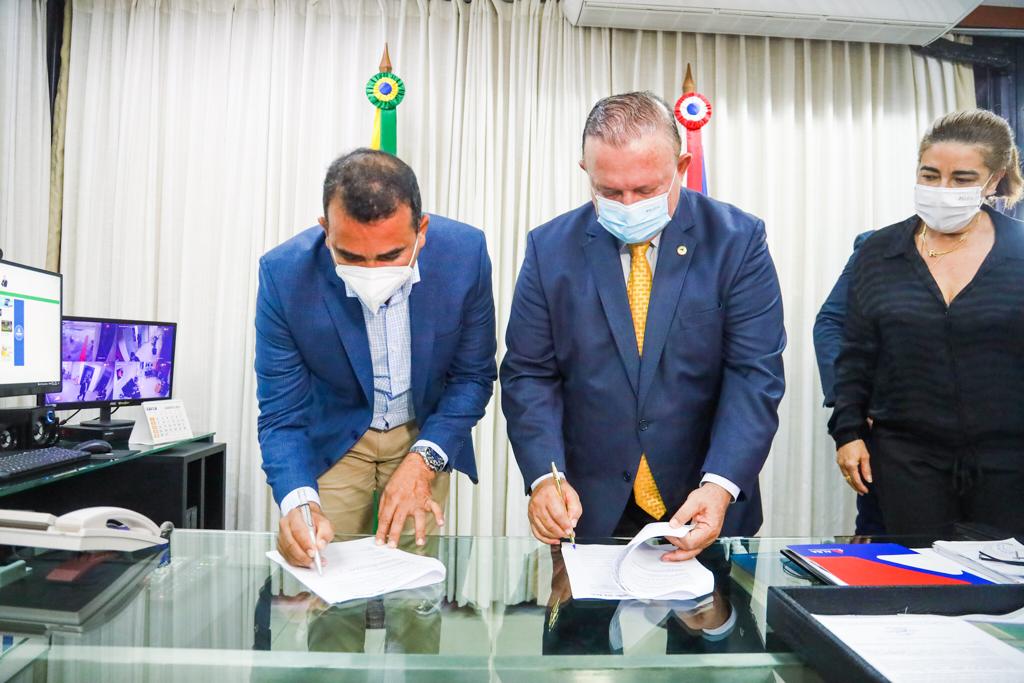 Um novo e grande passo na promoção da modernização da Câmara Municipal de Camaçari foi dado na tarde desta quinta-feira (5/8), quando foi assinado um termo de cooperação técnica entre o parlamento local e a Assembleia Legislativa da Bahia (Alba). A parceria entre as instituições foi firmada oficialmente pelos seus gestores – o presidente da Câmara, vereador Júnior Borges (DEM), e o presidente da Alba, o deputado estadual Adolfo Menezes (PSD) – e permitirá a utilização da tecnologia de certificação digital pela Câmara de Camaçari, um sistema desenvolvido e implementado por técnicos de informática da Alba que confere agilidade e funcionalidade aos trâmites internos, ao mesmo tempo em que reduz drasticamente a necessidade de utilização de papel.