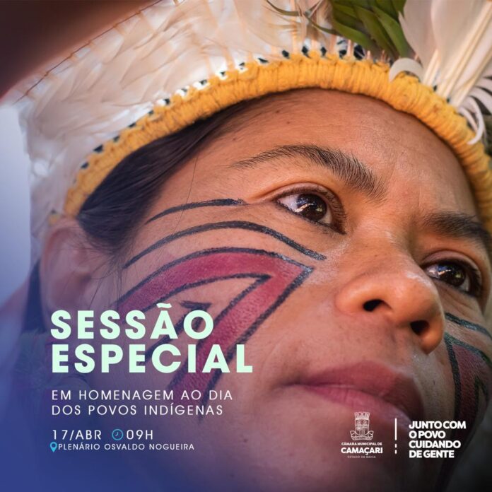 Será realizada, nesta segunda-feira (17/04), a partir das 9h, no plenário da Câmara de Camaçari, a Sessão Especial em homenagem ao Dia dos Povos Indígenas, comemorado em 19 de abril. A atividade foi solicitada pela Mesa Diretora da Casa Legislativa e tem como objetivo discutir aspectos da cultura dos povos originários.