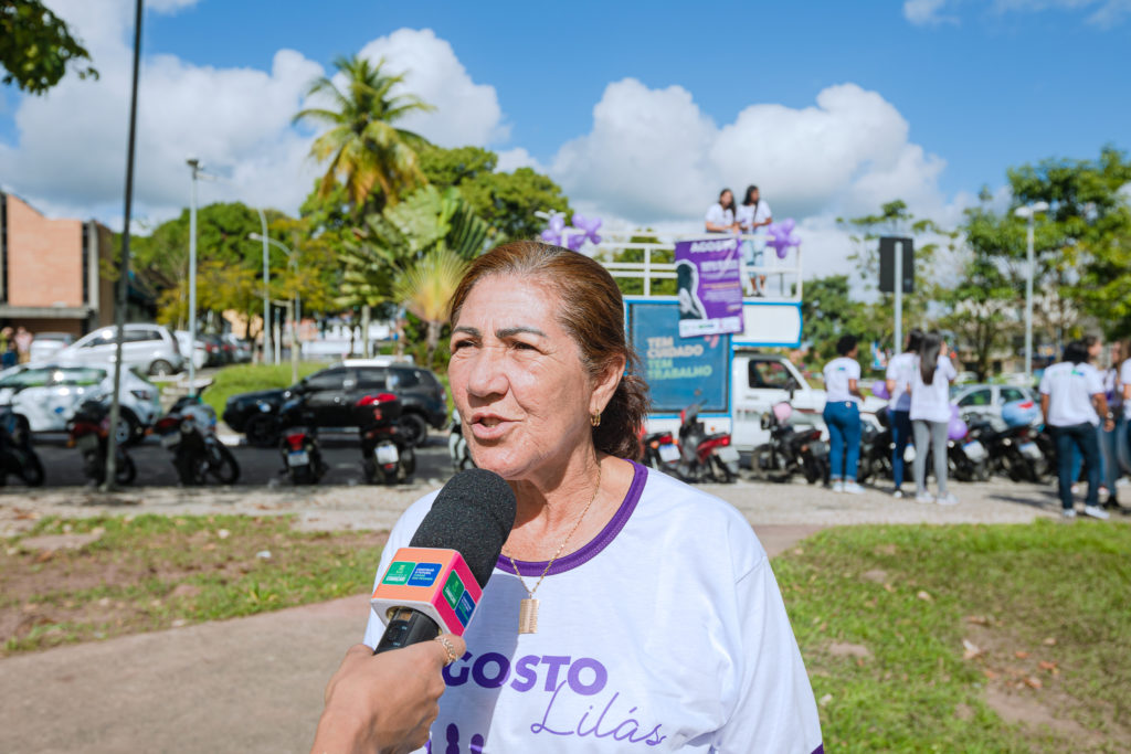 A colaboradora Elaine Costa, presente no evento, relatou a importância de participar dessas ações e das pessoas terem conhecimento sobre todos os tipos de violência contra a mulher e como enfrentá-los. “Esse é um mês importante que aborda essa temática. É necessário mesmo ter essa grande mobilização das mulheres e de toda a comunidade. Essa caminhada é apenas uma pequena demonstração de que as mulheres que sofrem violência não estão sozinhas”, afirmou.
