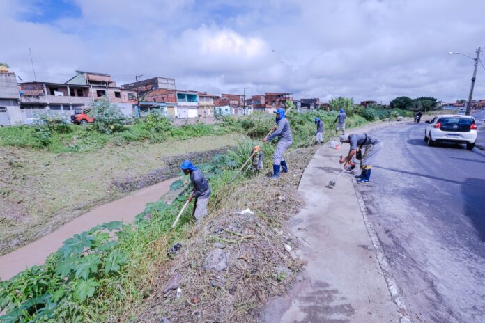 Com objetivo de manter o bom escoamento das águas pluviais, a Prefeitura de Camaçari, por meio da Secretaria da Infraestrutura (Seinfra), permanece com a atividade contínua de manutenção de limpeza de canais. Os serviços acontecem na Rua Bahia, na Nova Vitória.