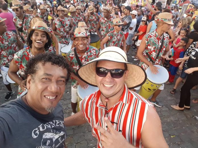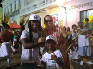 Cena que se repetiu durante os dois dias de apresentação do Som do Timbal no Carnaval no Pelô. “Fico muito feliz de receber o carinho dos nossos mestres da percussão na Bahia. Para mim uma honra de ter o reconhecimento deles” agradece Douglas.