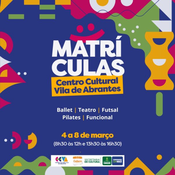 O Centro Cultural Vila de Abrantes abriu, nesta segunda-feira (4/3), o processo de matrículas para cursos culturais e esportivos. O equipamento, gerido pela Prefeitura de Camaçari, através da Secretaria da Cultura (Secult), oferta vagas para as modalidades de teatro, ballet, futsal, pilates e funcional.