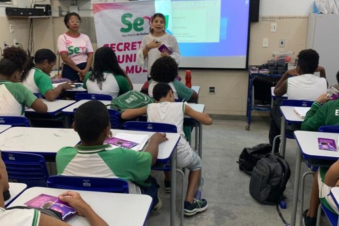 Professores e estudantes do Centro Educacional Tancredo Neves, em Jauá, foram contemplados com a 18ª edição do Semu nas Escolas – Todos Pelo Fim da Violência Contra a Mulher. Com o objetivo de levar informações que possibilitem romper o ciclo da violência, a equipe técnica da Secretaria da Mulher (Semu), realizou palestras e dinâmicas sobre os tipos de violência doméstica.