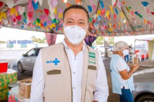 A vacinação na cidade continua para o público-alvo dos profissionais da saúde, que atuam no município, gestantes e puérperas até 45 dias após o parto. Na oportunidade, o titular da Secretaria da Saúde (Sesau) fez nova convocação às pessoas para participar da ação Vacinação Solidária, na qual as pessoas que vão se vacinar podem participar doando alimentos, roupas e agasalhos, produtos de higiene e materiais de limpeza, que serão oferecidos às famílias carentes de Camaçari. “O momento é de dificuldade para todo mundo e o nosso dever como cidadão é ser solidário com quem mais precisa”, reforçou.
