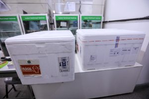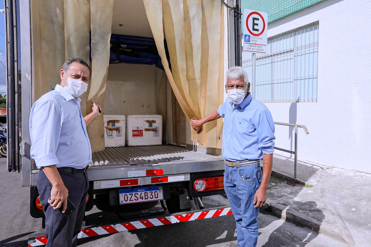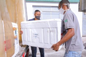 Chegaram na manhã desta terça-feira (19/01), em Camaçari, 2.040 doses da vacina contra Covid-19, enviadas pelo Ministério da Saúde. A vacinação começará hoje pela tarde com uma imunização simbólica durante entrevista coletiva, às 14h, no auditório da Secretaria de Governo, onde o secretário da Saúde, Elias Natan, apresentará para a imprensa como acontecerá a vacinação no município