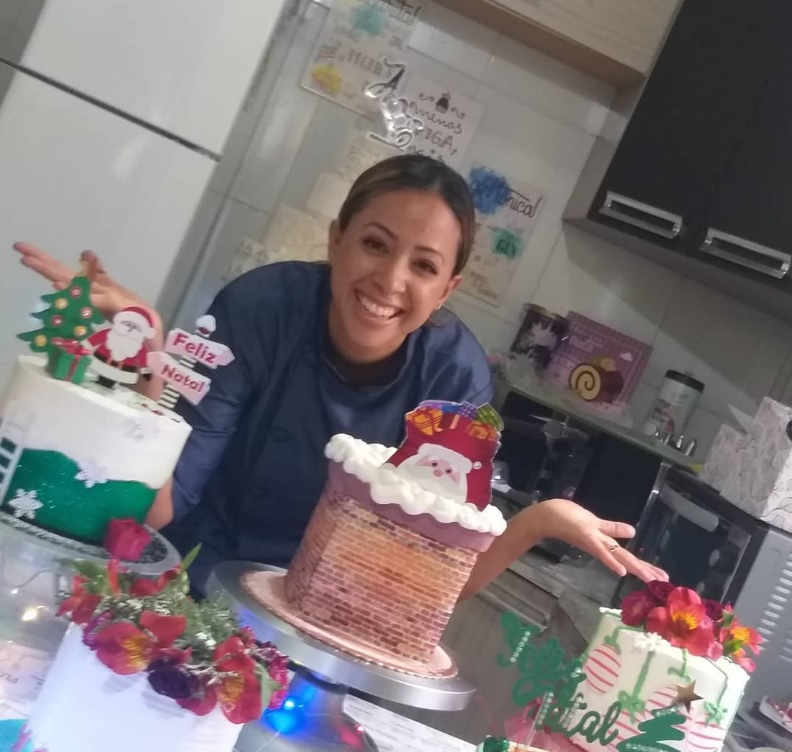 “A pessoa vai aprender diferentes tipos de decoração natalina com chantininho, quinas perfeitas, quinas imperfeitas, papel de arroz em 3D, espalulado, texturizado, fault line (bolo fenda), drip cake, wave cake, glow cake, e ainda de bônus uma receita de massa de bolo manteigado e uma massa coringa”, detalha a profissional que atua há 20 anos no mercado.
