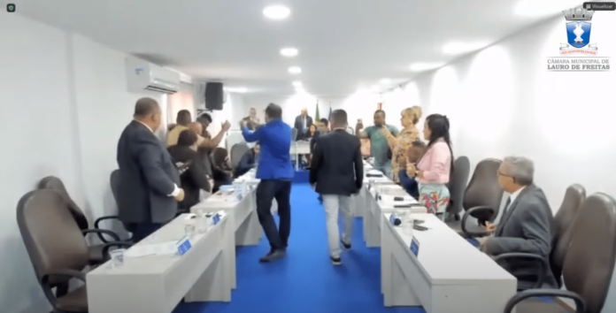 Uma discussão entre os vereadores Wellington Negão (PT) e Tenóbio (PSC), de Lauro de Freitas, interrompeu a sessão da Câmara Municipal na tarde desta quarta-feira (31).