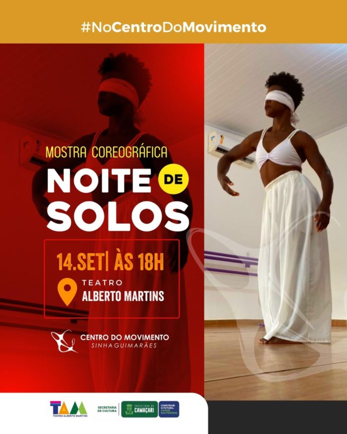 Nesta quarta-feira (14/9), o Teatro Alberto Martins (TAM) recebe, às 18h, a primeira mostra coreográfica Noite de Solos, apresentado pela Escola de Dança Centro do Movimento Sinha Guimarães, a fim de potencializar os alunos da instituição enquanto intérpretes criadores, partindo de duas linguagens, a dança Contemporânea e o Ballet Clássico.