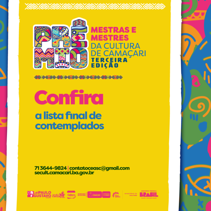 A Prefeitura de Camaçari, através da Secretaria da Cultura (Secult), divulgou a lista final de proponentes habilitados na fase de validação das inscrições da 3ª edição do Prêmio Mestres e Mestras da Cultura de Camaçari. Os aprovados nesta fase seguem para a segunda etapa, que é a de seleção e bonificações. A terceira e última etapa é a de comprovação e habilitação documental.