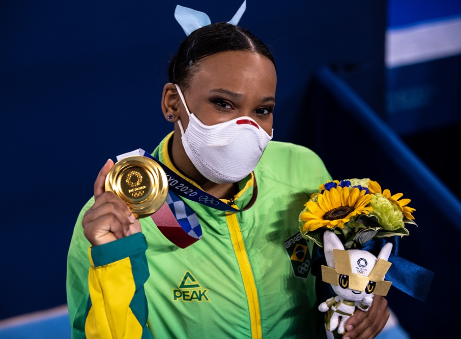 Rebeca Andrade conquistou neste domingo (1º) a primeira medalha de ouro na ginástica artística para o Brasil, nos Jogos Olímpicos de Tóquio. Ela venceu no salto e alcançou o lugar mais alto no pódio.