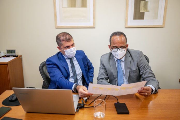Visando ampliar o teto financeiro para recebimento de recursos federais no que tange à Saúde para alta e média complexidade, o prefeito Elinaldo Araújo esteve reunido, na manhã desta terça-feira (3/8), com o ex-assessor especial de gabinete do Ministério da Saúde, Messias Boaventura. Também estiveram presentes no encontro, o secretário da Saúde de Camaçari, Elias Natan, e a diretora de planejamento da Sesau, Tamy Fonseca.