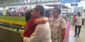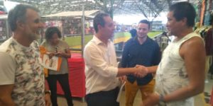 O ex-administrador do Centro Comercial, Antonio Carlos Bitencourt, conhecido como Antonio da Feira acompanhou a entrevista ao lado do secretário, sendo recebido pelo coordenador Namuciés Souza. E ao se despedir do local, ambos foram cumprimentos com carinho pelos permissionários.