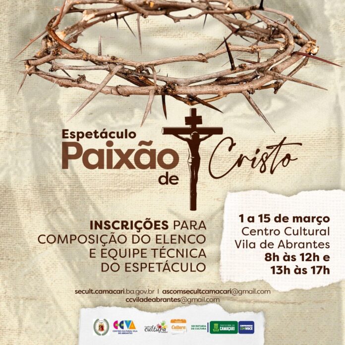 A celebração da Semana Santa este ano, no mês de abril, vai contar com um grande espetáculo cênico em Vila de Abrantes. A montagem da Paixão de Cristo acontece através da correalização entre a Secretaria da Cultura (Secult) e a Associação Cultural Fanfarra Municipal Popular de Abrantes (FAMPA), e promete encantar os espectadores.