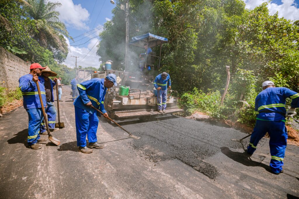 Os trabalhos seguem com a aplicação do asfalto e a execução de base e sub-base. Na primeira etapa da benfeitoria os serviços de pavimentação irão contemplar um trecho de 540 metros (m) de extensão.