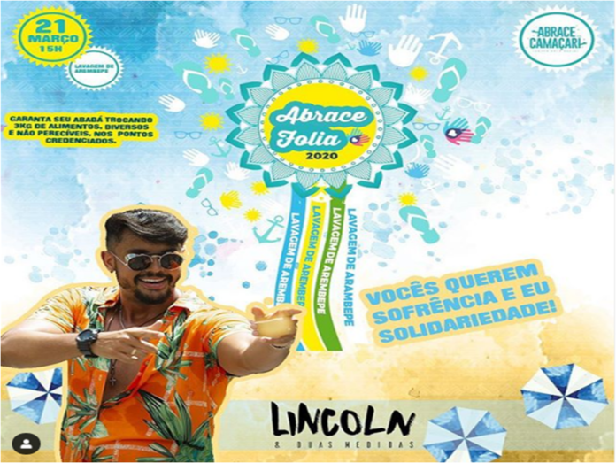 O cantor Lincol Senna comandará a animação dos foliões com a banda Duas Medidas. Para participar basta trocar três quilos de alimentos não perecíveis por um abadá nos pontos credenciados, como no Boulevard Shopping Camaçari.