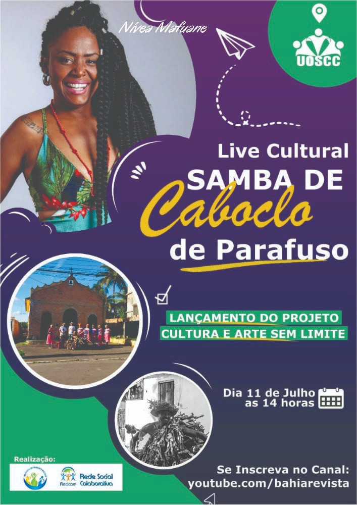 E como parte cultural do evento, uma live será transmita a partir das 14h por meio do canal do Youtube com o Show do Grupo Cultural Samba de Caboclo de Parafuso e Nívea Mafuane. Na oportunidade estará sendo lançado o projeto Cultura e Arte sem Limite.