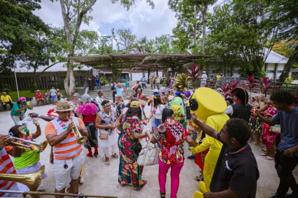 Animados por uma charanga, os assistidos do espaço de convivência exibiram suas fantasias, dançaram e se divertiram ao som de marchinhas tradicionais que foram sucesso nos carnavais antigos.