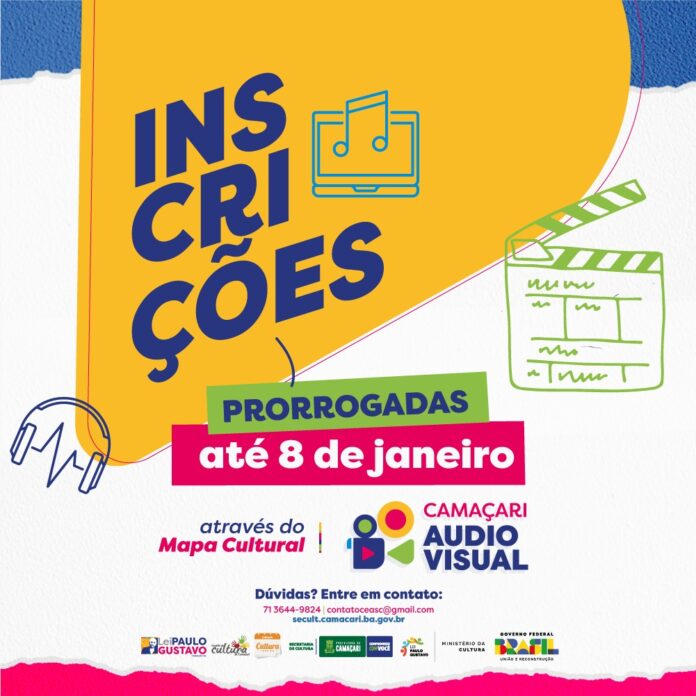 As inscrições para o edital de fomento Camaçari Audiovisual encerram às 12h da próxima segunda-feira (8/1). A iniciativa selecionará projetos culturais do segmento para receberem apoio financeiro.