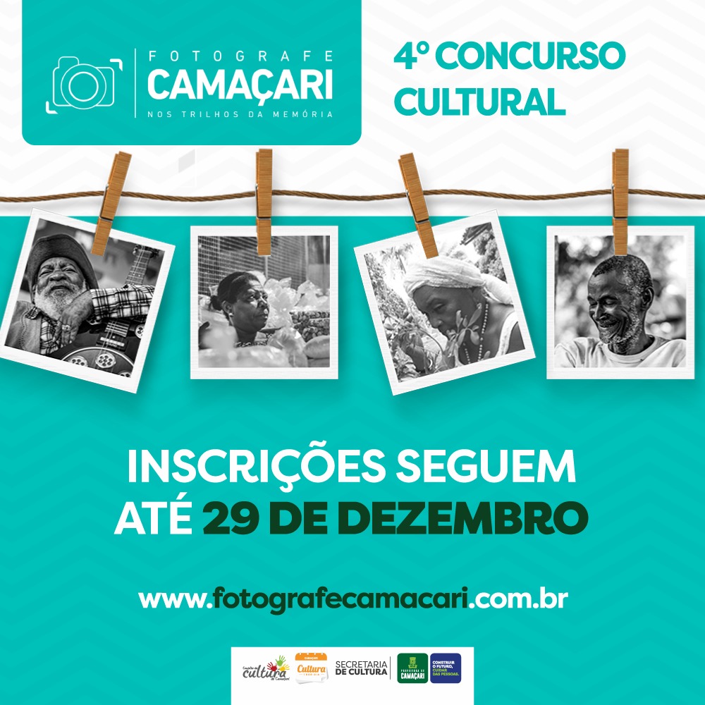 As inscrições para a 4ª edição do Fotografe Camaçari prosseguem abertas até o dia 29 de dezembro. Com o tema “Camaçari – Cultura Popular, Tradição e Ancestralidade”, o concurso cultural, lançado pela Secretaria da Cultura (Secult), premiará em dinheiro os autores das três melhores obras fotográficas nas categorias estudantil, amador e profissional, além dos professores orientadores dos vencedores na categoria estudantil. Serão 12 premiados, com valor total de mais de R$ 24 mil.