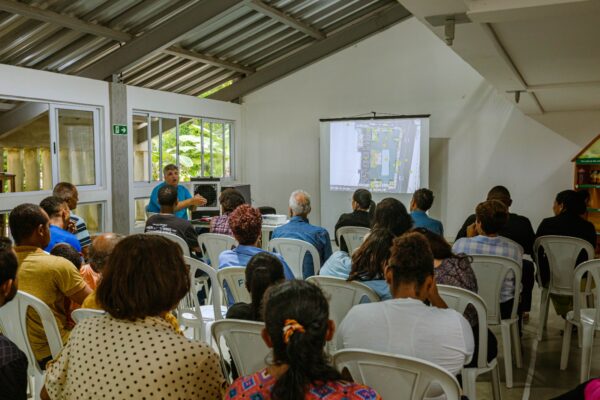 Promovido pela equipe social do Programa de Integração e Desenvolvimento Urbano, Social e Ambiental, que acontece em colaboração com o CAF – Banco de Desenvolvimento da América Latina e Caribe, o encontro teve como objetivo informar sobre o Projeto de Trabalho Social (PTS) relacionado a essas intervenções, apresentar o plano de engenharia e oferecer um espaço aberto para questionamentos e demandas da comunidade.