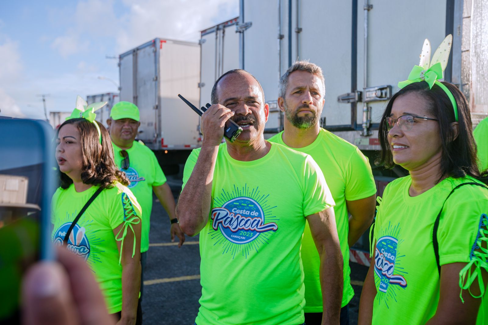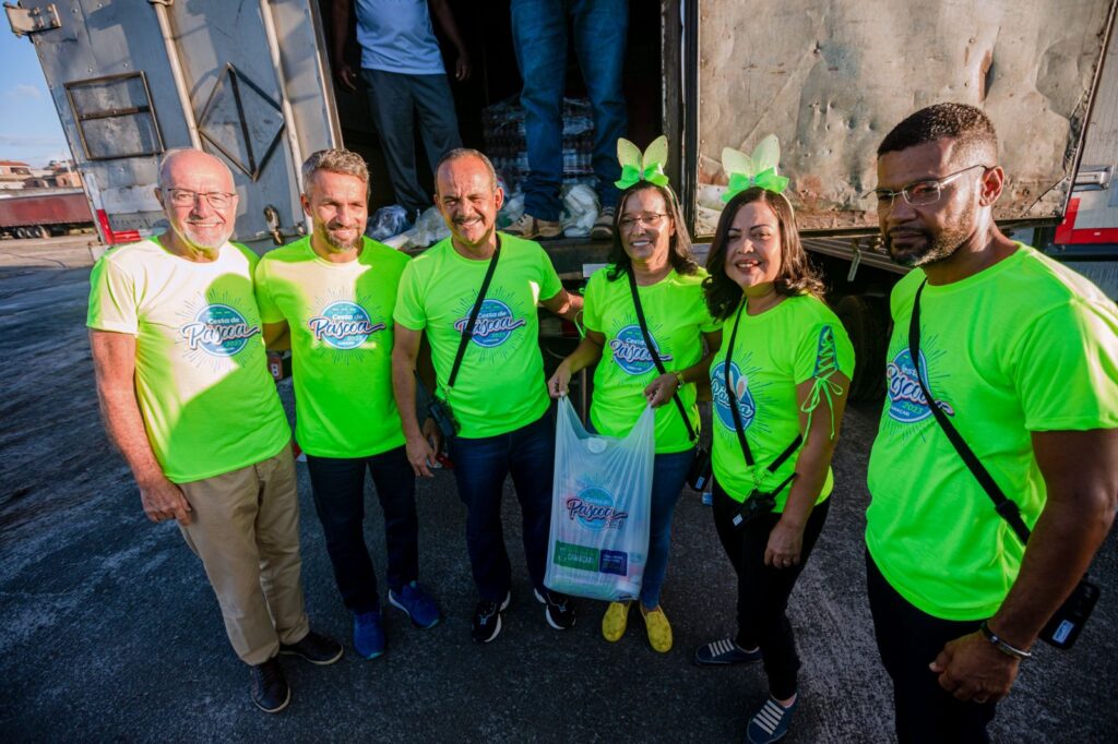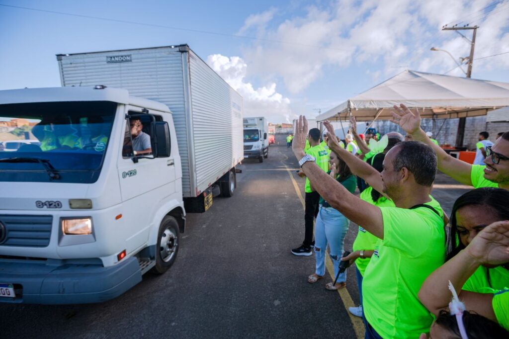 No início da manhã deste sábado (1°/4), o prefeito Elinaldo Araújo esteve no Espaço Camaçari 2000 para acompanhar a saída dos caminhões que transportam os itens da Cesta de Páscoa. Repetindo o feito de todas as edições da iniciativa, o gestor acompanhou a preparação das equipes envolvidas na entrega do benefício, com o propósito de orientar e desejar a todos os profissionais um dia produtivo.