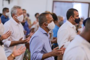 Celebrando São Thomaz de Cantuária, o prefeito Elinaldo Araújo, acompanhado da primeira-dama, Ivana Paula, do vice-prefeito José Tude, secretários e vereadores municipais, participou na tarde desta quinta-feira (7/1), da Santa Missa em homenagem ao Padroeiro de Camaçari. A celebração foi presidida pelo bispo diocesano Dom João Carlos Petrini, que em sua homilia falou sobre a importância de cada cidadão fortalecer a relação com Deus e dar o seu melhor em favor do bem comum e amar o seu semelhante.