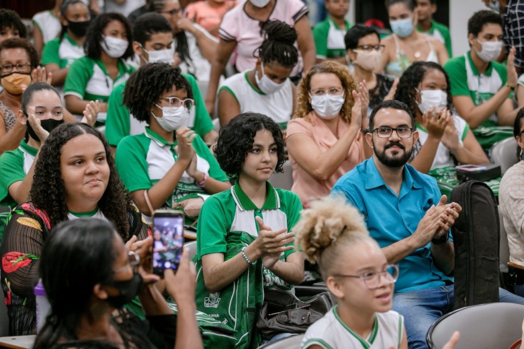 A Secretaria da Educação (Seduc) realizou, nesta segunda-feira (16/5), no auditório da Secretaria de Governo (Segov), o Fórum de Estudantes do Ensino Fundamental – Anos Finais. Com a presença do prefeito Elinaldo Araújo e da secretária Neurilene Martins, o evento teve como tema norteador “A Cultura de Paz através do Protagonismo Juvenil” e contou com apresentação musical do aluno Marcos Pablo, entrevistas mediadas pela estudante Ana Luisa Ferreira, declamação de poesia autoral com a estudante Keila Araújo, entre outras manifestações e atividades realizadas com autonomia pelos discentes.
