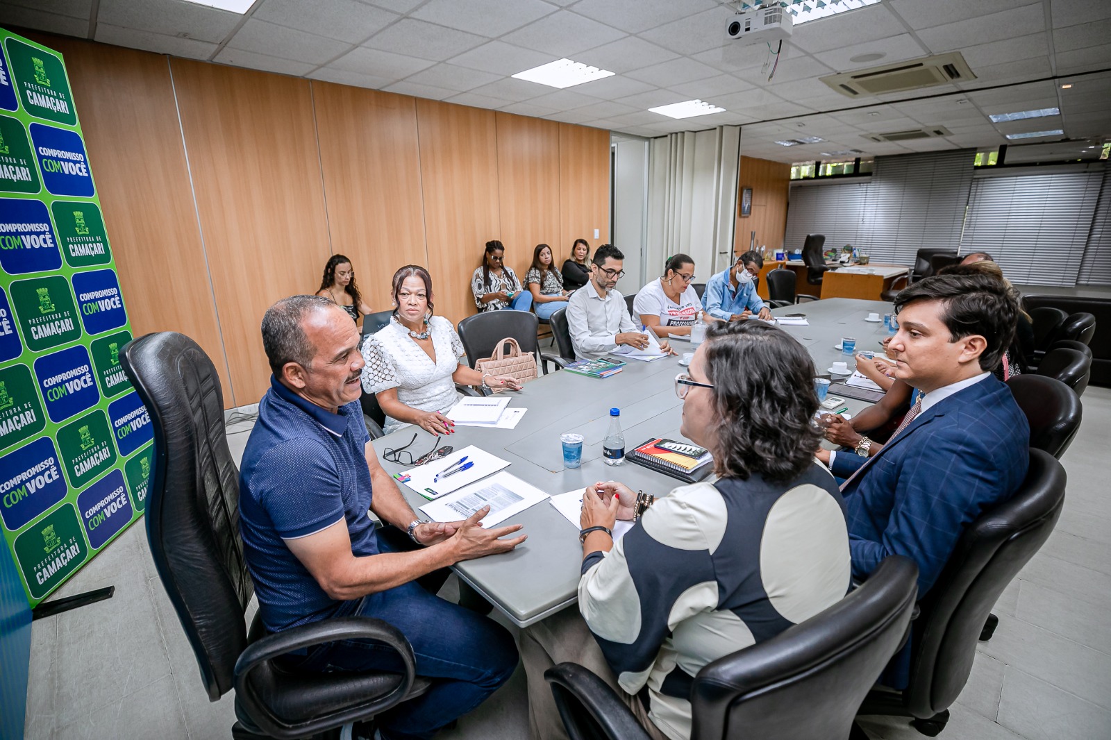 O prefeito de Camaçari, Elinaldo Araújo, e a secretária de Educação, Neurilene Martins, se reuniram, na manhã desta terça-feira (14/2), com a nova mesa diretora do Sindicato dos Professores e Professoras da Rede Pública Municipal de Camaçari (Sispec), liderada pela nova presidente, a professora Sara Santiago. O encontro aconteceu na sala de reuniões da Secretaria de Governo (Segov) e também contou com a presença de outras representações do gabinete da Secretaria da Educação (Seduc) e do Departamento Intersindical de Estatística e Estudos Socioeconômicos (Dieese).