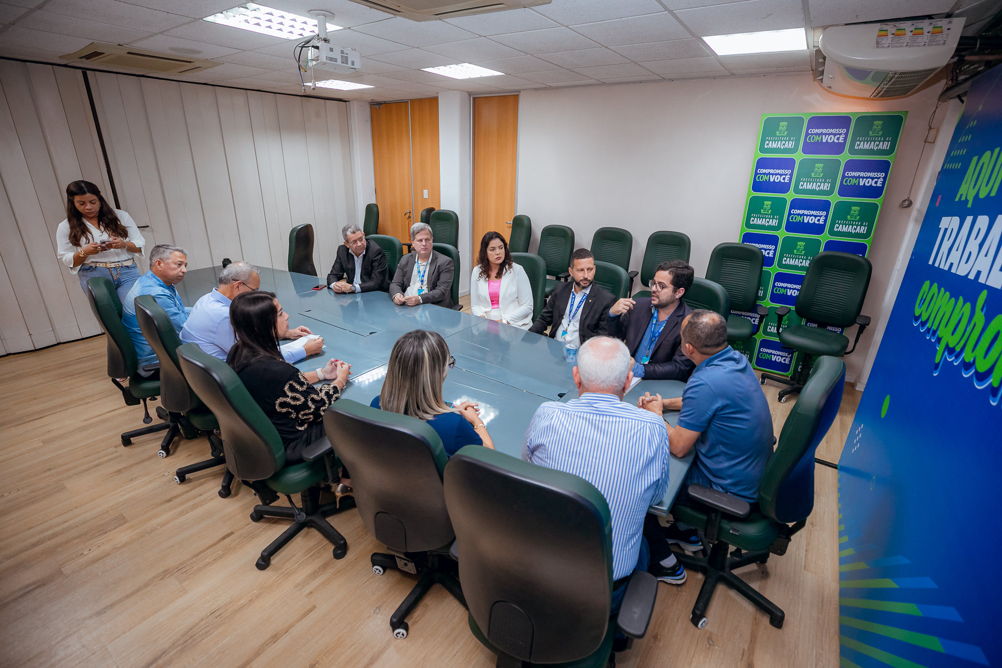Nesta terça-feira (25/7), o gabinete do prefeito Elinaldo Araújo foi palco de uma importante reunião para o futuro da mobilidade urbana de Camaçari. O encontro teve como foco a aprovação do pedido de autorização para contratar uma operação de crédito interno, no âmbito do Novo Programa de Aceleração do Crescimento (PAC) Seleções, do governo federal, no valor de R$ 95.340 milhões. Este financiamento visa a aquisição dos 30 ônibus elétricos e carregadores, essenciais para a renovação da frota do sistema de transporte público coletivo municipal.