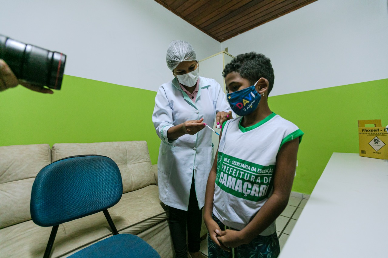 O processo de imunização de crianças com idade igual ou superior a cinco anos de idade assume um novo ritmo a partir desta segunda-feira (21/2) em Camaçari. Isso porque, além de ocorrer nas unidades de saúde, o serviço de vacinação também passa a ser ofertado em escolas da Rede Pública Municipal de Ensino. A Escola Municipal Padre Paulo Maria Tonucci, no bairro Novo Horizonte, foi uma das unidades escolhidas para funcionar como polo de vacinação e, nesta tarde, deu início à ampliação da cobertura vacinal entre os estudantes.