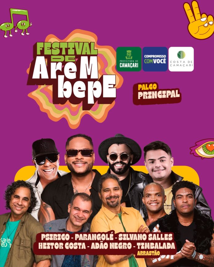 As primeiras atrações do Festival de Arembepe 2024 – Essa energia é sem igual já foram confirmadas pela Prefeitura de Camaçari. Entre os dias 8 e 11 de março, subirão ao palco principal bandas, como Psirico, Parangolé e Adão Negro; e os cantores Silvano Salles e Heitor Costa. O evento ainda conta com o arrastão da Timbalada.