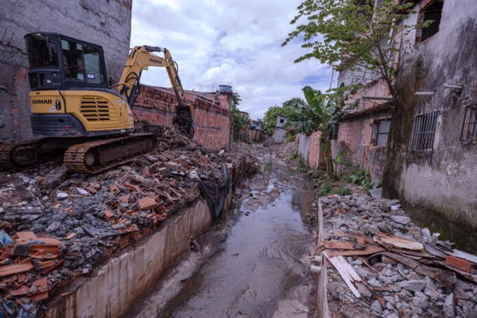 Mesmo com o clima chuvoso, a Prefeitura de Camaçari, por meio da Secretaria da Infraestrutura (Seinfra), mantém a limpeza dos canais da cidade. Nesta quinta-feira (27/10), uma equipe encontra-se na Rua Gandu, no bairro Nova Vitória. Para o serviço, é utilizado maquinário que auxilia na remoção do resíduo. Paralelo a esta atividade, no Jardim Brasília, outro grupo efetua o recolhimento de detritos do canal da comunidade.