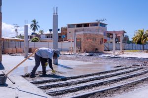 Ainda segundo os profissionais, na praça também é feito outros procedimentos como a instalação do piso cerâmico dos quiosques e vestiário, além da concretagem no entorno dos quiosques. Em um outro ponto do espaço de lazer, os trabalhos acontecem com a realização do assentamento de meio-fio, miniguia (etapa que compõe a execução da pavimentação em piso intertravado), passeio e aplicação de piso em concreto com detalhe em granito.