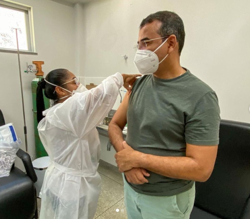 Após apresentar relatórios médicos, entrou na sala e recebeu a primeira dose da vacina Pfizer, sem esconder a alegria pelo tão esperado momento. “Renovando todas as esperanças diante de tudo que estamos vivendo”, ressaltou lembrando que “mesmo recebendo poucas dose, o prefeito Elinaldo junto à Sesau tem trabalhado para que toda a população seja vacinada com celeridade!.