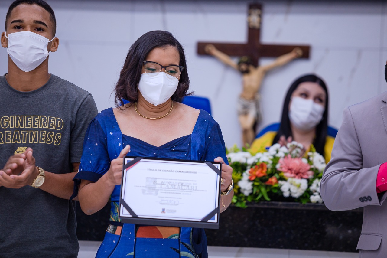 Na noite desta quinta-feira (9/12), a gestora da Secretaria do Desenvolvimento Social e Cidadania (Sedes), Reni Oliveira, foi homenageada e recebeu o título de Cidadã Camaçariense. A honraria foi concedida durante sessão solene no plenário da Câmara Municipal. A indicação pelo nome da titular da pasta, foi do vereador Niltinho.