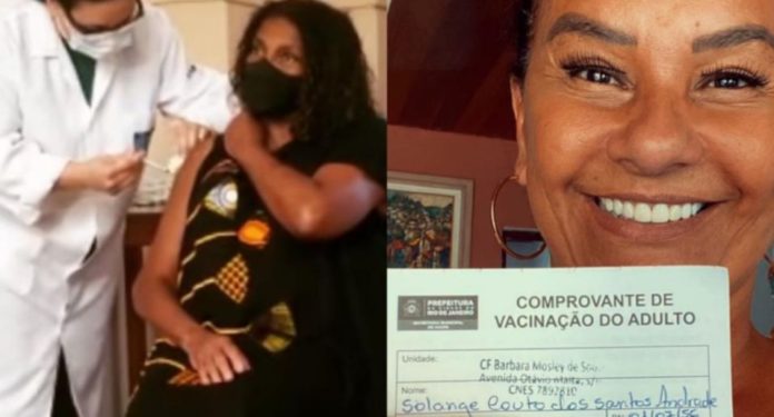 Solange Couto também usou seu perfil no Instagram para comemorar o recebimento da primeira dose da CoronaVac, cujos testes foram realizados pelo Instituto Butantan, em São Paulo.