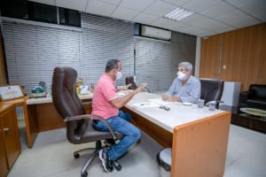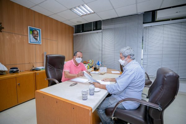 No sentido de estabelecer o cronograma de pagamento do mês de junho dos servidores da Prefeitura de Camaçari, o prefeito Elinaldo Araújo esteve reunido na tarde desta quarta-feira (9/6) com o secretário da Administração, Helder Almeida. O encontro aconteceu no gabinete do gestor municipal.