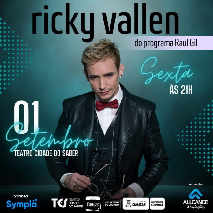 O Teatro Cidade do Saber (TCS) recebe no mês de setembro, um show com grandes sucessos do cantor Ricky Vallen, que levará ao palco um repertório composto por clássicos da MPB e da música internacional. O evento será no dia 1º/9, às 21h, e conta com patrocínio da Secretaria da Cultura (Secult).