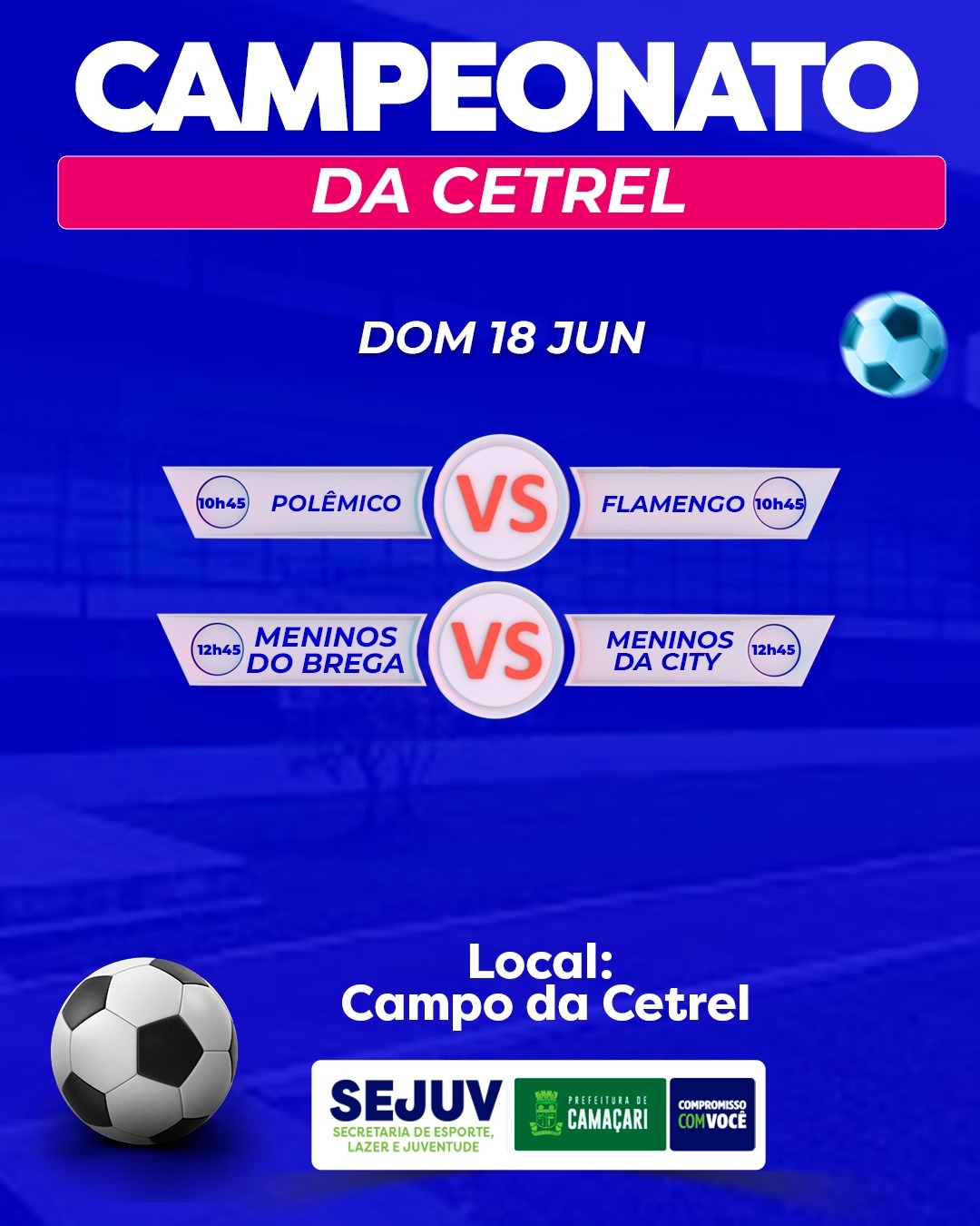 Na Arena Alto da Mira, em Monte Gordo, acontecerão as partidas entre Juventude e Bela Vista; Cebolinha e Monte Gordo; e Cruzeiro e Meninos da City. Já pelo Campeonato de Barra do Pojuca, os duelos ocorrem entre Gerando Vidas e Boca Júnior; e Lunáticos versus Inter Malvinas. Fecha a maratona, o Campeonato da Bomboneira, com mais dois jogos na Arena Bomboneira, em Vila de Abrantes, Quilombolas enfrenta o Tucunaré, e a equipe Osasco pega o Sport.