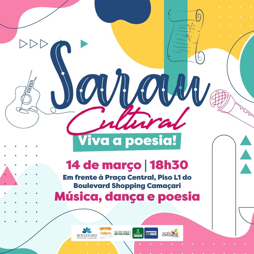 Na próxima terça-feira (14/3), o Conselho Municipal de Cultura de Camaçari (CMCC) promove um sarau cultural para celebrar a poesia nacional. O evento, que conta com apoio da Secretaria da Cultura (Secult) e do Boulevard Shopping Camaçari, será realizado às 18h30, no piso L1 do empreendimento, em frente à praça central.