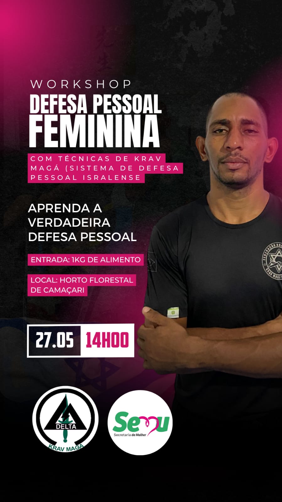 A Secretaria da Mulher (Semu), em parceria com a Delta, primeira Escola de Treinamento de Krav Maga de Camaçari, promove neste sábado (27/5), um workshop de Defesa Pessoal no Horto Florestal Linaldo da Silva, a partir das 14h, para o público feminino. As inscrições serão realizadas mediante a doação de 1 quilo (kg) de alimento não perecível, que serão doados ao Instituto mais Ação. Para se cadastrar, é só entrar em contato pelo perfil do Instagram @delta.kravmaga, até as 13h do dia do evento.