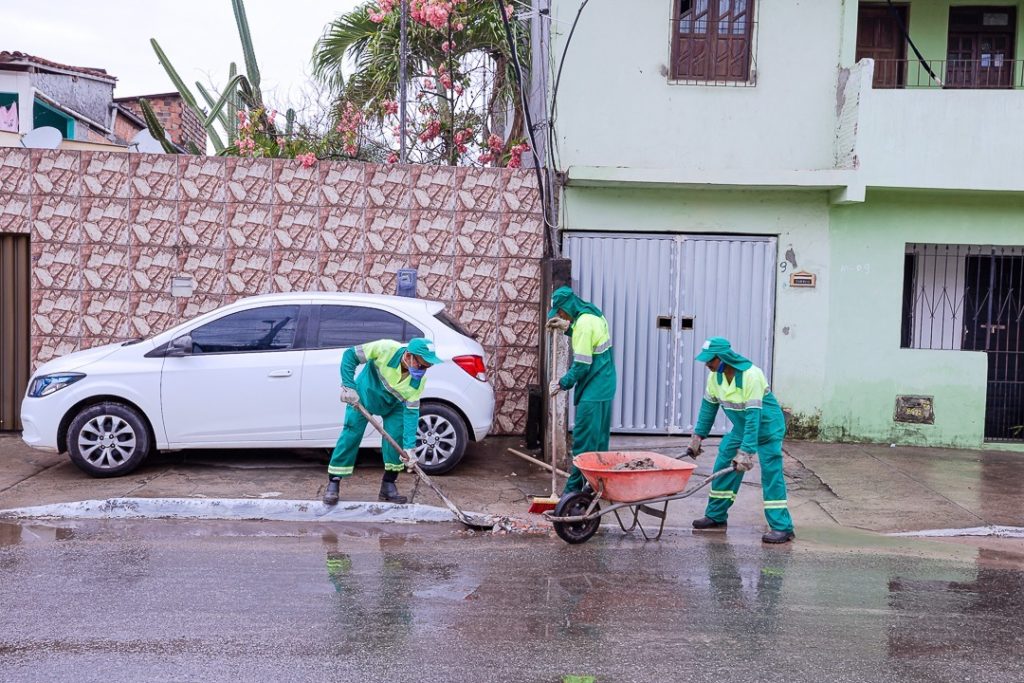 Mesmo com a chuva, logo no início da manhã desta segunda-feira (8/11), a Prefeitura de Camaçari, através da Secretaria dos Serviços Públicos (Sesp), realiza ação de limpeza em locais que tiveram alagamentos por conta da chuva nos últimos dias, em especial no último domingo (7/11). Locais como Jardim Brasília, Nova Vitória, Horto Florestal e Avenida Sul, além de vias principais da cidade, recebem os serviços.