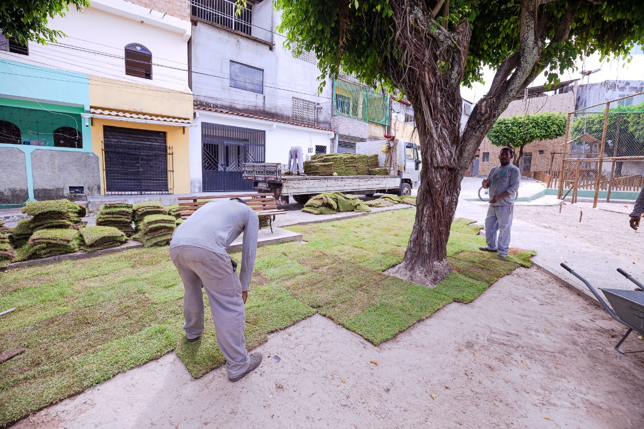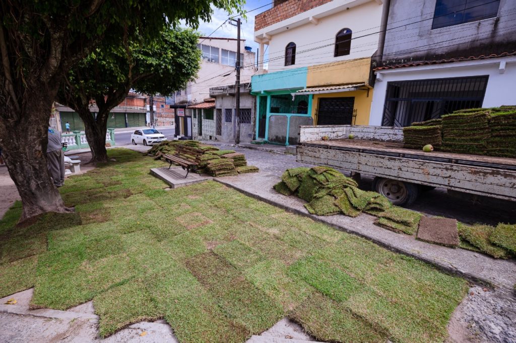 No bairro Nova Vitória, a Praça Papa Mel e o canal da Maria Meire ganham harmonização e revitalização das áreas verdes. Nas localidades, a Sesp realiza o plantio de árvores e de novas mudas, aliado ao tratamento do solo.