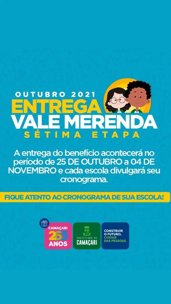 O Vale Merenda integra o programa “Mais e Melhor Educação: em Casa”, implementado pela gestão municipal durante a crise sanitária provocada pela pandemia do coronavírus. Para esclarecer dúvidas ou realizar denúncias de conduta indevida no uso do benefício, o cidadão pode entrar em contato através do número (71) 98621-1112.